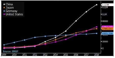 從2005年起,德國十年間的太陽能裝機(jī)量一直在全球首屈一指,直到2015年以后才被裝機(jī)迅猛增長的中國取而代之。由于德國政府為控制成本限制上網(wǎng)電價補(bǔ)貼,對公用事業(yè)項目轉(zhuǎn)向發(fā)電容量拍賣的方式,日本2016年的裝機(jī)量可能超過了德國,美國2017年也可能超越。為了保住市場份額,太陽能電池板制造商SolarWorld和太陽能逆變器生產(chǎn)商SMA Solar等德國太陽能企業(yè)越來越將銷售的重心放在歐盟以外市場,比如美國。