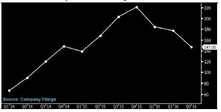 由于購買電腦的協(xié)議價下跌,美國用于公用事業(yè)供電的太陽能需求增長放緩。這可能影響美國公用事業(yè)項目風(fēng)險敞口高的公司,封殺他們2017年擴(kuò)大市場份額的機(jī)會。First Solar和SunPower都屬于此類公司(這類項目2016年創(chuàng)造的營業(yè)收入占全美太陽能公司總收入的85%)。