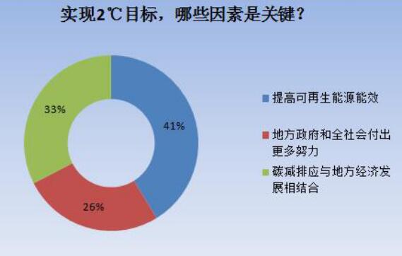 還有33%的受訪人群認(rèn)為,碳減排應(yīng)與地方經(jīng)濟(jì)發(fā)展相結(jié)合是實現(xiàn)2℃目標(biāo)的關(guān)鍵因素。