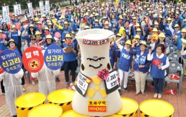 民眾團體團在釜山舉行抗議活動,要求韓國政府停止新建核設施