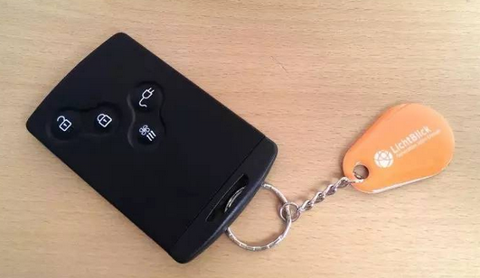 用于在充電樁充電的射頻卡(黃色),上面有Lichtblick這家電力供應(yīng)公司的標(biāo)志