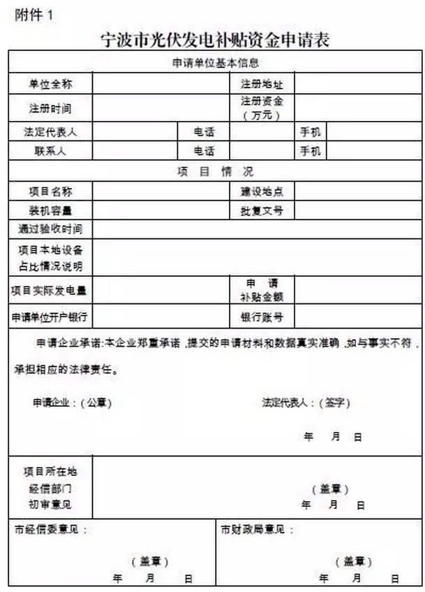 附件:1.寧波市光伏發(fā)電補貼資金申請表