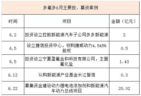 實際上,包括此次募資項目在內(nèi),今年6月以來,多氟多圍繞新能源產(chǎn)業(yè)已發(fā)起了5起投、募資項目,涉及資金總額逾24億元。