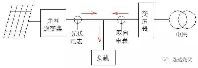 分布式光伏,自發(fā)自用,余量上網,一般要裝兩塊電表,逆變器出來裝一塊電表,記錄光伏發(fā)電,用戶側并網點裝一塊雙向電表,用來記錄光伏向電網送電以及用戶向電網買電。