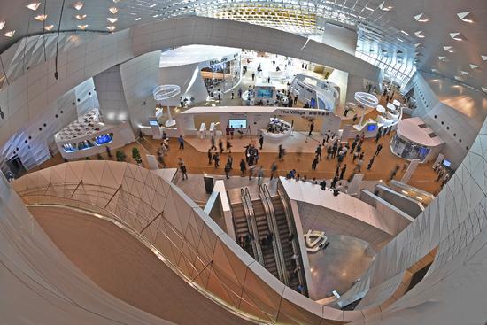 ↑這是6月27日拍攝的大連國際會(huì)議中心內(nèi)景。新華社記者 楊青 攝