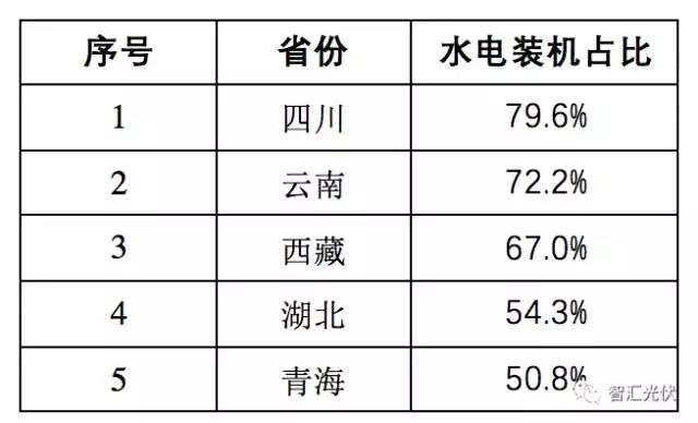 截至2016年底,全國各省水電累計裝機占比超過50%以上的省份如下表。