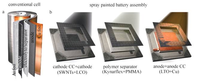噴涂制備鋰離子電池的過(guò)程示意圖