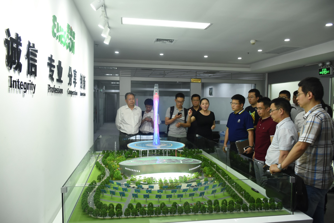 愛能森董事長陳明麗,首席技術(shù)官曾智勇等接待了來訪的調(diào)研團(tuán),并為調(diào)研團(tuán)詳細(xì)介紹了其儲能技術(shù)優(yōu)勢、公司的發(fā)展歷程以及愛能森承建的光熱發(fā)電項(xiàng)目。在愛能森展廳,調(diào)研團(tuán)詳細(xì)了解了愛能森宿遷光電科技中心“塔式光熱發(fā)電儲能+智慧能源管理”項(xiàng)目。項(xiàng)目的多項(xiàng)技術(shù)在全球都是首次應(yīng)用,是首個多元熔鹽儲能應(yīng)用項(xiàng)目;首個城市建筑與光熱發(fā)電相結(jié)合的項(xiàng)目;首個光熱發(fā)電、光伏發(fā)電、儲能調(diào)峰、熱電冷聯(lián)供、智慧能源管理一體化項(xiàng)目。