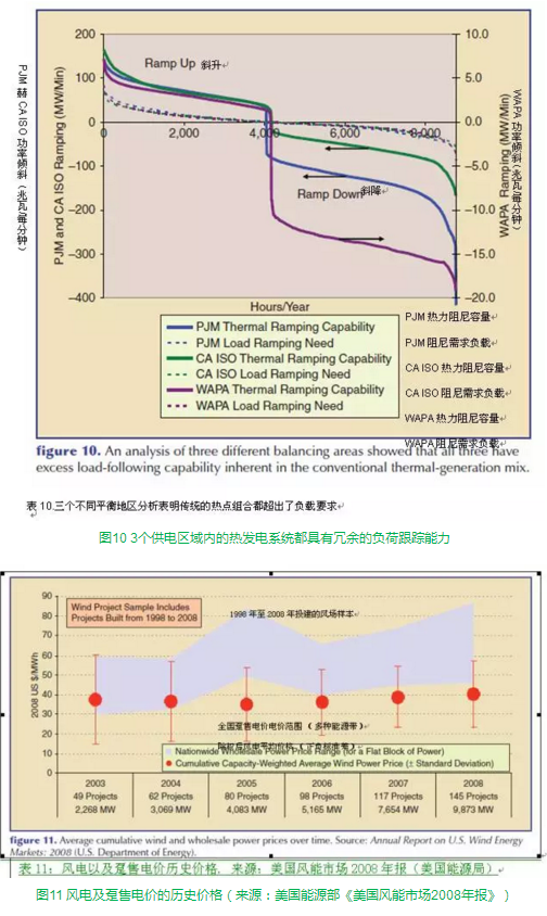 次小時(shí)(低于1小時(shí))需求側(cè)管理和此小時(shí)發(fā)電調(diào)度為常規(guī)發(fā)電機(jī)組實(shí)現(xiàn)機(jī)動(dòng)性能提供了便利。在某些區(qū)域,只允許按照以小時(shí)為單位進(jìn)行調(diào)節(jié),不能充分發(fā)揮現(xiàn)有的彈性,但并不是因?yàn)榘l(fā)電機(jī)組不具備這樣的性能,而是當(dāng)?shù)氐氖袌?chǎng)規(guī)則決定的。例如,美國的“大區(qū)域輸電管理”系統(tǒng)(RTOs)已經(jīng)根據(jù)次小時(shí)市場(chǎng)需求成功運(yùn)行了多年。風(fēng)電的集群化進(jìn)一步降低了大規(guī)模風(fēng)電的波動(dòng)性,凈負(fù)荷強(qiáng)化了非線性波動(dòng),而調(diào)節(jié)性能則有線性提高。