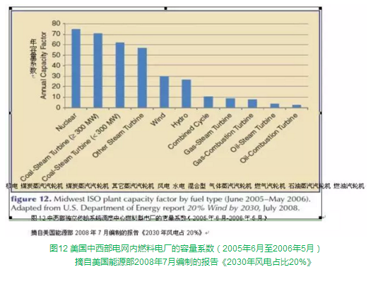 從單位電力投資成本來看,造價(jià)為2500美元/千瓦、利用率為40%的風(fēng)電場(chǎng),造價(jià)為3750美元/千瓦、利用率為60%的火電廠,造價(jià)為5000美元/千瓦、利用率為80%的核電站,在單位投資成本方面是相同的。當(dāng)然,后期的運(yùn)行成本,尤其是燃料和維護(hù)成本,是不同的。但是煤電和核電燃料成本很低,而風(fēng)電不需要燃料。所以三種發(fā)電方式的運(yùn)行成本都只占其投資成本的一小部分。