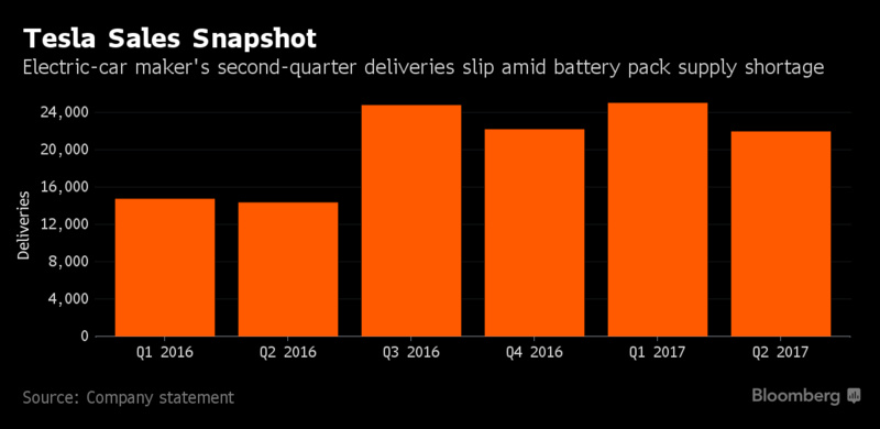 據(jù)彭博社報(bào)道,今年第二季度電動(dòng)汽車制造商特斯拉的銷售量為22000輛普通轎車以及SUV,而今年第一季度這一數(shù)字是25051輛。此前特斯拉曾透露,公司今年上半年的最低銷售預(yù)期是47000-50000輛汽車。