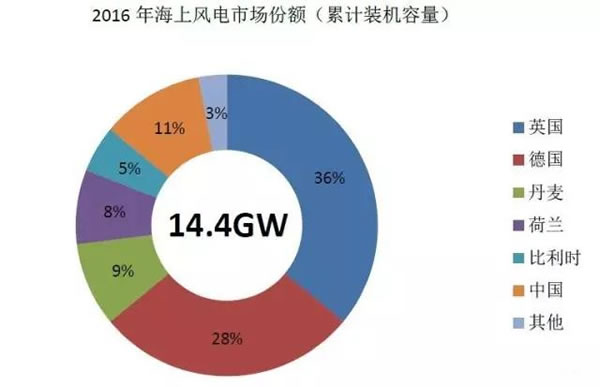 2016年,全球海上風(fēng)電裝機(jī)達(dá)到14.4GW,其中歐洲占據(jù)了其中的87%,尤以英國、德國、丹麥、荷蘭、比利時(shí)五國,下文的主要分析對(duì)象,即針對(duì)以上五國。