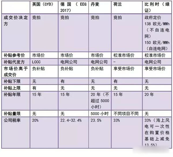 對(duì)于一項(xiàng)新技術(shù)的扶持往往是一整套體系,以海上風(fēng)電為例,政策扶持涉及到較多方面,如整個(gè)裝機(jī)目標(biāo)的確定、選址方式、電網(wǎng)連接、供應(yīng)鏈發(fā)展、研發(fā)支持等,而在此,小編僅對(duì)歐洲幾個(gè)海上風(fēng)電發(fā)展大國的直接激勵(lì)政策(補(bǔ)貼機(jī)制)稍作整理,看看不一樣的補(bǔ)貼思路。