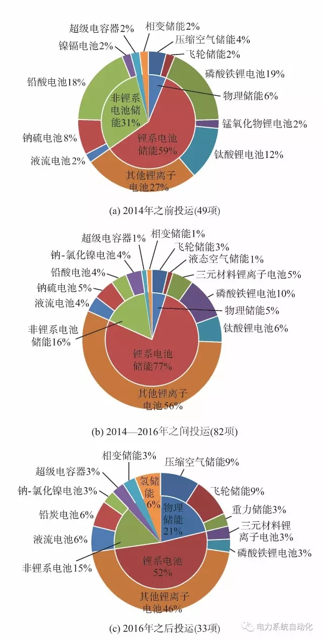 鋰系電池為MW級(jí)儲(chǔ)能調(diào)頻應(yīng)用主流類型,其中鈦酸鋰電池高倍率特性和較好的循環(huán)壽命,應(yīng)用前景廣闊。鈉硫、鉛酸電池在2014年之前具有前期優(yōu)勢(shì),之后鉛炭電池涉入。儲(chǔ)能技術(shù)類型呈多元趨勢(shì),未來重力儲(chǔ)能、氫儲(chǔ)能等將應(yīng)用于調(diào)頻領(lǐng)域。