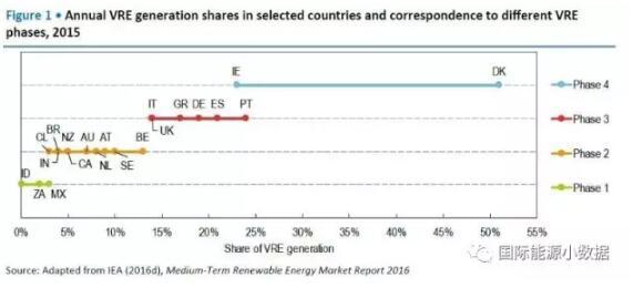 第3階段:間歇性可再生能源占比在15-25%之間,必要引入需求側(cè)管理與儲(chǔ)能技術(shù)的應(yīng)用。處于這個(gè)階段的國(guó)家包括意大利、英國(guó)、德國(guó)、西班牙、葡萄牙。