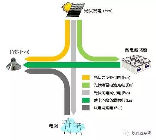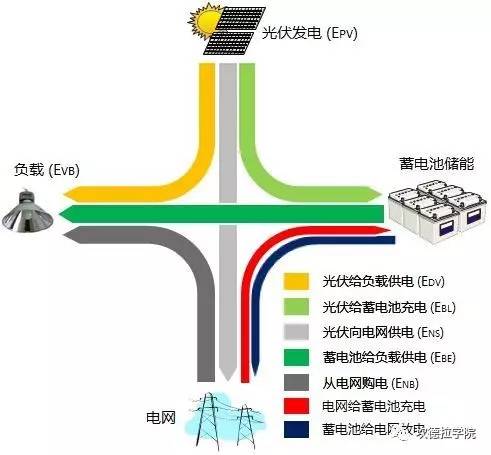 中國儲能網(wǎng)訊:光伏儲能系統(tǒng)能量管理的目標是:能量資源與負荷需求的精確匹配。由于集合了不同的技術,重要的是采取正確的策略實現(xiàn)性能的最大化以及成本最小化。下圖是光伏儲能系統(tǒng)能量流動的關系圖。