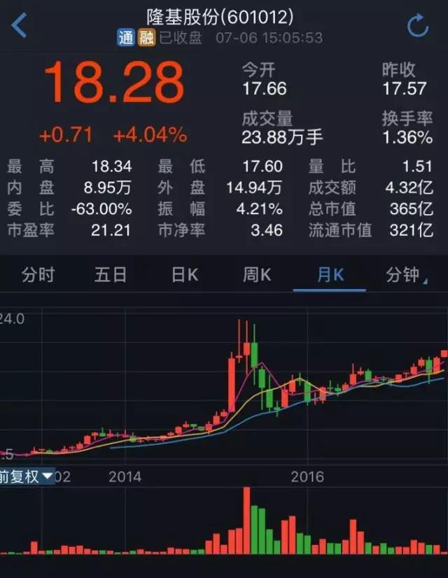 稍微了解一點資本市場評價的人都知道,隆基股份是一支特別白的白馬股。