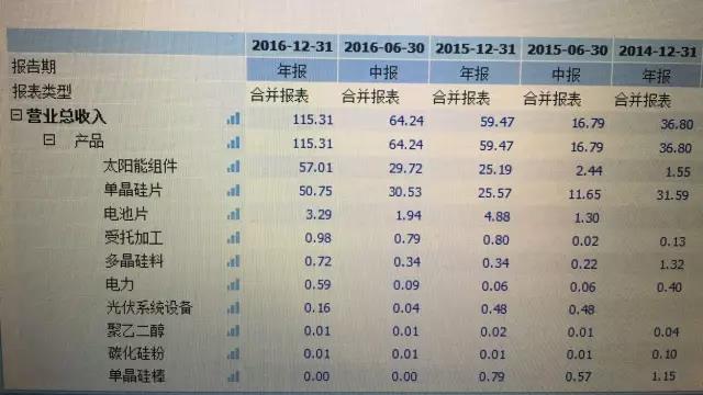 從產(chǎn)品類型來看,公司的單晶硅片在同期上升,但組件也已成為核心收入來源。2014年,單晶組件還僅僅只有1.55億元的進賬,2年之后,收入突飛猛進,達到了57.01億元,已占據(jù)了公司年營收的一半。這部分的收入,大量來自于樂葉。