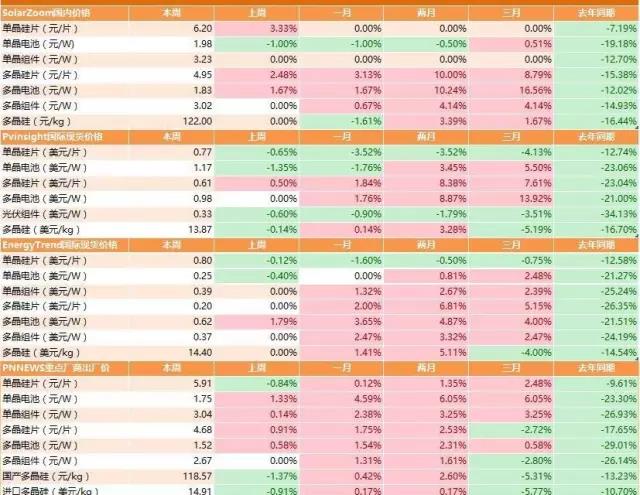 需要注意的是,隆基的單晶硅片售價,年度同比雖有所下降,但降幅是所有產(chǎn)品中最少的。隨著“630”搶裝潮的結束,整體光伏需求可能會有所下滑,單晶硅及組件價也有繼續(xù)下探的可能性,這也對企業(yè)的降本增效提出了更高的要求。下圖的四個渠道統(tǒng)計數(shù)據(jù)顯示,單晶硅片同比分別降幅在7%、12.74%和12.58%。相對而言,組件的降幅更明顯,PVinsight的數(shù)據(jù)中提到,組件有34%的年降幅。
