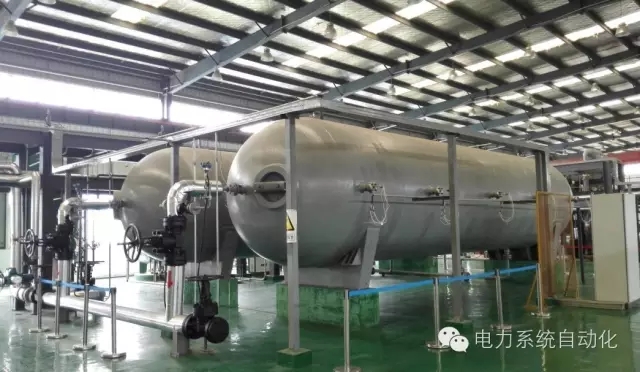 回?zé)嶙酉到y(tǒng)用于存儲(chǔ)壓縮過(guò)程中所產(chǎn)生的壓縮熱,在釋能過(guò)程中,通過(guò)其所存儲(chǔ)的壓縮熱加熱透平進(jìn)口的空氣,從而實(shí)現(xiàn)壓縮熱的回收利用。其主要由換熱器、儲(chǔ)熱罐、工質(zhì)泵等組成。作為非補(bǔ)燃?jí)嚎s空氣儲(chǔ)能的關(guān)鍵技術(shù),回?zé)峒夹g(shù)對(duì)系統(tǒng)的儲(chǔ)能效率影響極大,回?zé)嵝试礁?,系統(tǒng)的儲(chǔ)能效率也越高。TICC-500系統(tǒng)利用加壓水作為儲(chǔ)熱工質(zhì),采用梯度儲(chǔ)熱技術(shù),將不同溫度的水分級(jí)存儲(chǔ),避免高低溫?zé)崃康膿交欤WC所儲(chǔ)熱量的品位。儲(chǔ)熱系統(tǒng)的照片如圖5所示。