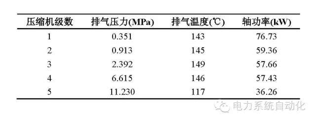 儲(chǔ)能過(guò)程:通過(guò)電機(jī)驅(qū)動(dòng)壓縮機(jī),將環(huán)境空氣壓縮至高壓,并存儲(chǔ)于儲(chǔ)氣罐中,儲(chǔ)能過(guò)程結(jié)束時(shí),儲(chǔ)氣罐中的壓力為10MPa。壓縮機(jī)的排氣溫度可以達(dá)到150℃,利用回?zé)嶙酉到y(tǒng)中的加壓水回收壓縮過(guò)程所產(chǎn)生的壓縮熱,并將此熱量(120℃)存儲(chǔ)于高溫水罐中。