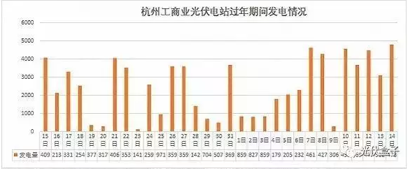 位于杭州地區(qū)的工商業(yè)光伏電站在過年期間的發(fā)電表現(xiàn)不佳,分析原因較大因素由于過年期間浙江地區(qū)的天氣氣候造成,在個(gè)別天數(shù)中,電站的發(fā)電量僅有三位數(shù),但同時(shí)也隨著冷空氣的結(jié)束,進(jìn)入2月中旬,電站的發(fā)電量開始趨于正常,最高2月14日達(dá)到了4786度。