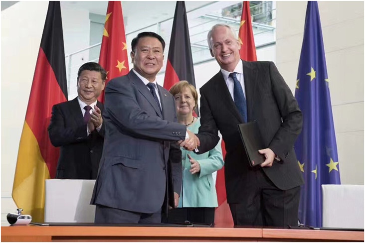 7月5日,在中國(guó)國(guó)家主席習(xí)近平與德國(guó)總理默克爾的共同見(jiàn)證下,北汽集團(tuán)與戴姆勒簽署了新的框架協(xié)議。北汽集團(tuán)董事長(zhǎng)徐和誼和戴姆勒股份公司董事會(huì)成員、負(fù)責(zé)中國(guó)業(yè)務(wù)的唐仕凱(Hubertus Troska)出席了在德國(guó)柏林舉行的簽約儀式。雙方表示,將共同投資50億元人民幣,引入梅賽德斯-奔馳品牌的純電動(dòng)汽車產(chǎn)品,在北京奔馳建立純電動(dòng)汽車生產(chǎn)基地及動(dòng)力電池工廠。