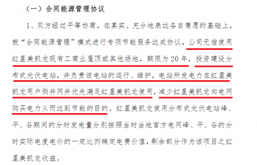 公告顯示,國電能源將按照合同約定的方式,就紅星美凱龍智能微電網(wǎng)項目中的四項節(jié)能項目,以建設(shè)分布式光伏電站、安裝充電樁、建設(shè)儲能電站、簽訂售電協(xié)議的順序分部實施。本協(xié)議包含《合同能源管理協(xié)議》、《儲能電站投資運營管理合同》、《充電樁安裝運營協(xié)議》、《電力交易(售電)協(xié)議書》四個部分。