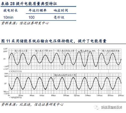 由于存在電力系統(tǒng)操作負荷性質(zhì)多變,設(shè)備負載非線性等問題,使得用戶獲得的電能存在電壓、電流變化或者頻率偏差等問題,此時電能的質(zhì)量較差。系統(tǒng)調(diào)頻、無功支持就是在發(fā)電側(cè)和輸配電側(cè)提升電能質(zhì)量的形式。在用戶側(cè),儲能系統(tǒng)同樣可以進行平滑電壓、頻率波動,例如利用儲能解決分布式光伏系統(tǒng)內(nèi)電壓升高、驟降、閃變等問題。提升電能質(zhì)量屬于典型的功率型應(yīng)用,具體放電市場及運行頻率依據(jù)實際應(yīng)用場景而有所不同,但一般要求響應(yīng)時間在毫秒級。