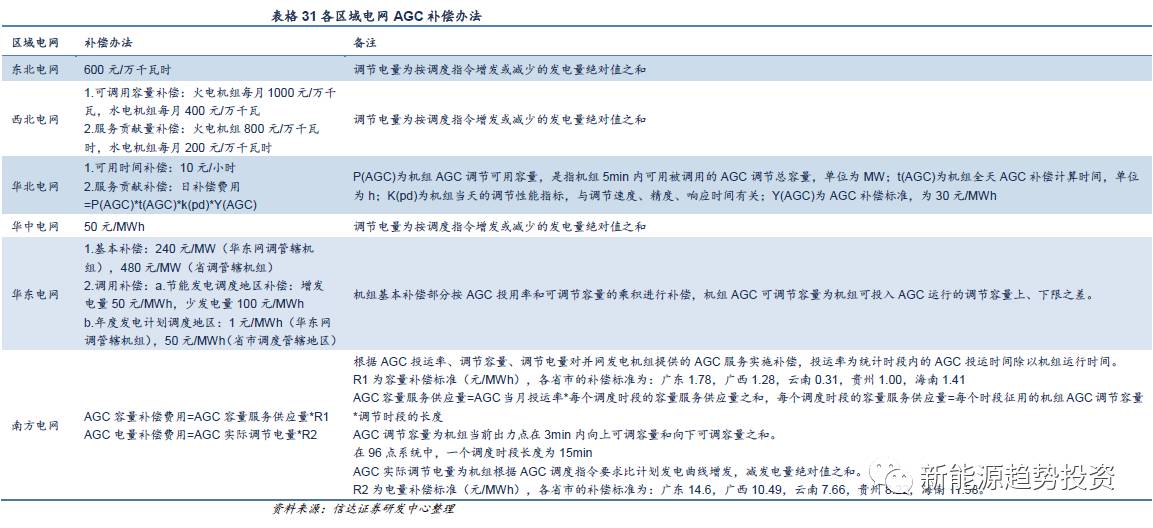 儲能技術(shù)的經(jīng)濟性評價方法有多種,由于儲能帶來的社會效益無法被企業(yè)所量化獲得,因此我們只按現(xiàn)有機制計算儲能的投資回報。實際上,由于不同的應(yīng)用場景、不同的區(qū)域以及不同的儲能技術(shù)需要考慮的變量因素不同,在現(xiàn)行電力體制下,可能存在區(qū)域性的盈利機會。以輔助服務(wù)為例,由于有不同的標準和政策,實際計算中需要做相應(yīng)調(diào)整。如各區(qū)域的《發(fā)電廠并網(wǎng)運行管理細則》和《并網(wǎng)發(fā)電廠輔助服務(wù)管理細則》中規(guī)定了電力輔助服務(wù)交易的承付、輔助服務(wù)種類、考核補償方式等。各區(qū)域調(diào)頻補償辦法不同,其中華北電網(wǎng)的補償在考慮了容量補償和可用時間補償以外還考慮了調(diào)節(jié)性能,一定程度上使得性能更優(yōu)的儲能電站可以獲得更多的補償。