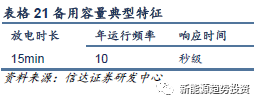 備用容量是指在滿足預(yù)計負荷需求以外,針對突發(fā)情況時為保障電能質(zhì)量和系統(tǒng)安全穩(wěn)定運行而預(yù)留的有功功率儲備,一般備用容量需要在系統(tǒng)正常電力供應(yīng)容量的15~20%,且最小值應(yīng)等于系統(tǒng)中單機裝機容量最大的機組容量。在我國,備用容量服務(wù)分為旋轉(zhuǎn)備用、非旋轉(zhuǎn)備用和其他備用。備用容量一般應(yīng)用在發(fā)電機組在下線到上線的這段時間內(nèi),放電時間相對較短,但是要求有較大的功率來將儲存的能量在短時間內(nèi)釋放出去,因此是功率型應(yīng)用。