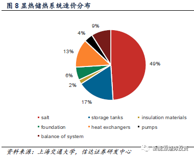 顯熱儲熱是利用材料所固有的熱熔進行的熱量儲存形式,其特點是鹽成本占總成本的近一半,而儲熱密度低(0.2GJ/m3),顯熱儲熱的研究時間最長,成本相對較低,在國外也有少量商業(yè)化應(yīng)用,但是國內(nèi)由于起步晚,還未進入大規(guī)模商業(yè)化運行階段,實際上光熱發(fā)電中使用的熔融鹽以及太陽能熱水器其本質(zhì)就是顯熱儲熱。