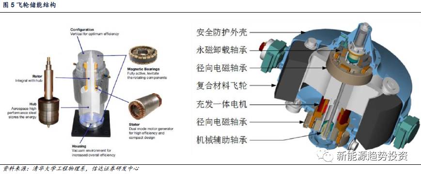 但是飛輪儲能的主要缺點在于其空載下的能量損失大,每小時超過2.5%。盡管飛輪儲能理論能量密度高達200-400Wh/kg,但是在實際應(yīng)用過程中,限于材料的因素,安全穩(wěn)定運行的飛輪的儲能密度通常不高于100Wh/kg,此外,價格昂貴也是影響飛輪儲能推廣的因素之一。從技術(shù)研發(fā)的角度看,一方面將飛輪國產(chǎn)化以降低成本是大勢所趨,另一方面尋求新型飛輪材料以提升能量密度或者降低成本是飛輪儲能應(yīng)用推廣的關(guān)鍵。總體上來說,由于飛輪儲能屬于功率型儲能,其應(yīng)用場景在于調(diào)頻,平滑新能源輸出波動上,同時由于其放電時間較短(屬于分秒級應(yīng)用),目前主要應(yīng)用在UPS中。