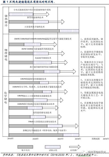 從技術(shù)的角度看,《能源技術(shù)革命創(chuàng)新行動計劃(2016-2030年)》對不同的儲能技術(shù)在近、中、遠期分別制定了不同的目標,可以看做是對儲能技術(shù)的戰(zhàn)略指導(dǎo)方向,但是文件針對的是先進儲能技術(shù),從規(guī)劃的時間看,即使是發(fā)展進度最快的分布式能源系統(tǒng)中的大容量儲熱/儲冷系統(tǒng)也要在2020年商業(yè)化推廣,而在此期間,對現(xiàn)有的儲能技術(shù)如何進行支持則并沒有提及。