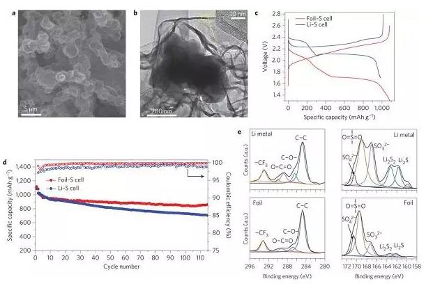 c)LixSi/石墨烯- 硫電池與鋰-硫電池的電學性能對比;