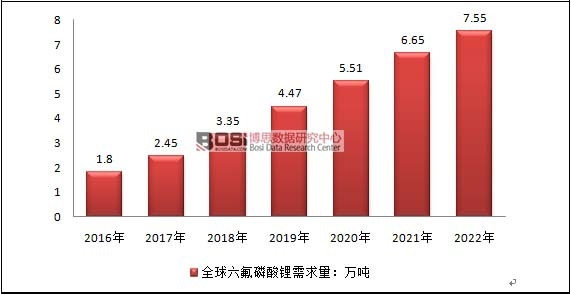 2016-2012年全球六氟磷酸鋰需求量預(yù)測