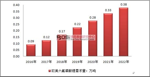 2016-2012年歐美六氟磷酸鋰需求量預(yù)測
