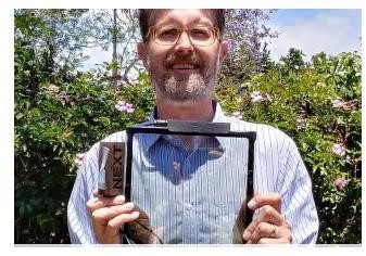 Next Energy Technologies首席技術(shù)官Corey Hoven手里拿著大小為8 x 8(英寸)的產(chǎn)品模型