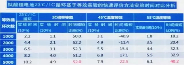 圖中可以看出,鈦酸鋰的循環(huán)次數(shù)和容量保持率是大大好于磷酸鐵鋰電池。據(jù)我們的測(cè)試經(jīng)驗(yàn)來(lái)看,循環(huán)次數(shù)七八千次以前,國(guó)內(nèi)的電池和國(guó)際上的電池區(qū)別不大,七八千次以后,國(guó)產(chǎn)電池的一致性上有差異。這些問(wèn)題促使我們需要改進(jìn)評(píng)測(cè)技術(shù)。