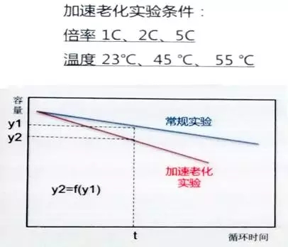在實(shí)驗(yàn)中,通過(guò)對(duì)電池在常規(guī)實(shí)驗(yàn)和加速老化實(shí)驗(yàn)條件下的定期表征,找尋不同條件下電池特性一致的等效點(diǎn),建立等效點(diǎn)之間的函數(shù)關(guān)系(y2=f(y1)), 從而以加速實(shí)驗(yàn)條件的數(shù)據(jù)對(duì)常規(guī)1C、23℃實(shí)驗(yàn)條件下的數(shù)據(jù)進(jìn)行預(yù)測(cè)和估算。