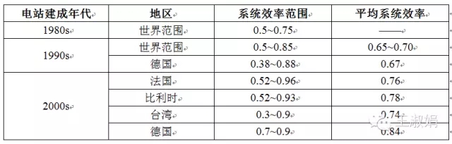 隨著光伏電站整體設(shè)計、施工、運維技術(shù)水平的提高,光伏電站的效率也在不斷提高。下表是國外機(jī)構(gòu)的一個統(tǒng)計結(jié)果。