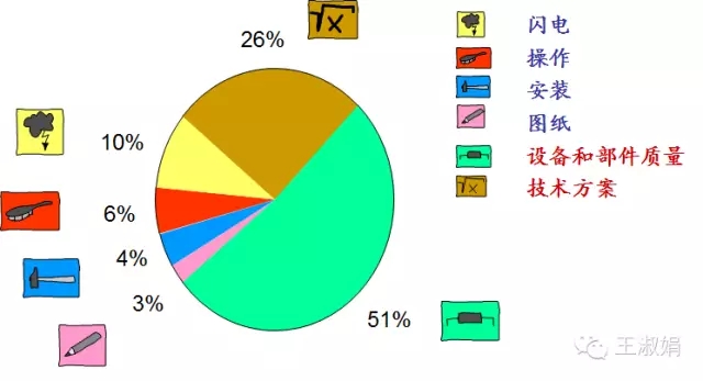 設(shè)備故障和檢修時造成系統(tǒng)效率低的一個重要原因。下圖統(tǒng)計了光伏電站故障原因,其中一半都是來自于設(shè)備。