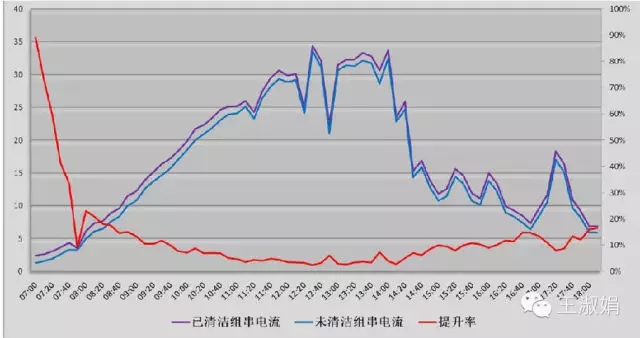 在西北地區(qū),一次沙塵暴可能會造成發(fā)電量直接降低5%以上;在東部,嚴(yán)重的霧霾天氣時光伏電站幾乎沒有出力。下圖是清洗前后光伏電站的出力對比。