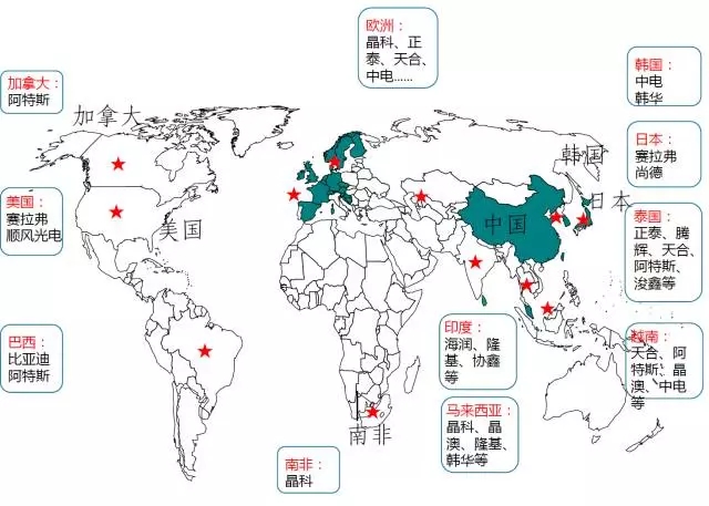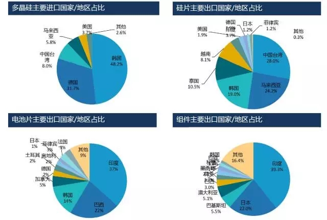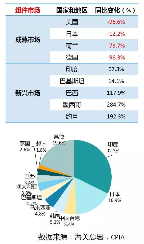 5. 組件出口市場(chǎng)由歐美日成熟市場(chǎng)轉(zhuǎn)向新興市場(chǎng)的趨勢(shì)明顯,包括印度、巴西、巴基斯坦、墨西哥等;