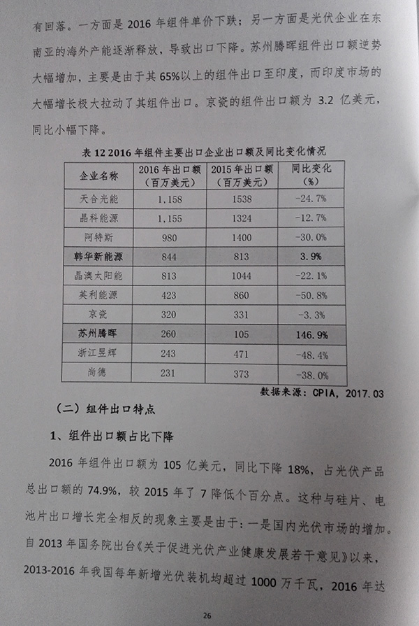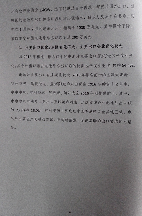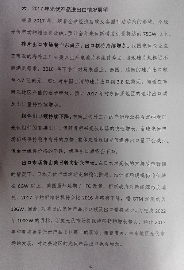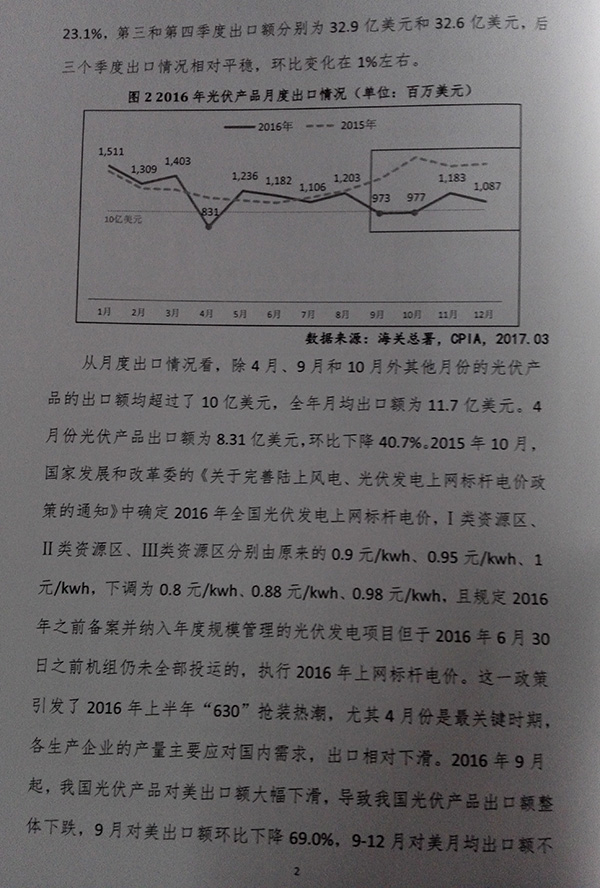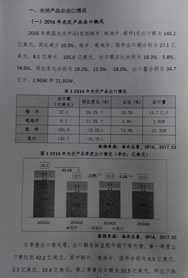 2016年中國光伏產(chǎn)品進(jìn)出口報告