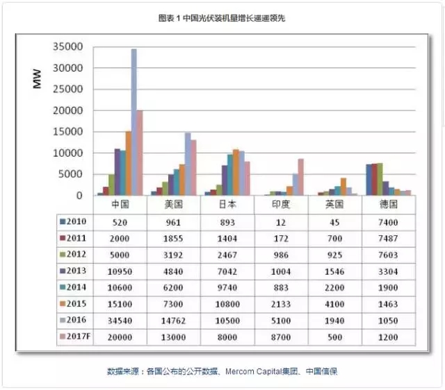 2016年全球光伏新增裝機(jī)70GW,比2015年增長(zhǎng)大約30%,然而,進(jìn)入2017年后,作為我國(guó)光伏出口的幾大重點(diǎn)市場(chǎng)--日本、德國(guó)、美國(guó)都將面臨政策上的轉(zhuǎn)變和監(jiān)管上的不確定性,整體市場(chǎng)需求面臨縮減,也將進(jìn)一步影響我國(guó)光伏出口的表現(xiàn)。