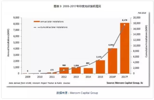 展望2017年,印度目前有14.2GW的太陽(yáng)能發(fā)電項(xiàng)目正在開(kāi)發(fā)中,6.3GW的太陽(yáng)能發(fā)電正在招標(biāo)中。我們初步預(yù)計(jì)印度2017年太陽(yáng)能發(fā)電量將增加8.7GW,包括1.1GW的屋頂太陽(yáng)能板發(fā)電計(jì)劃。