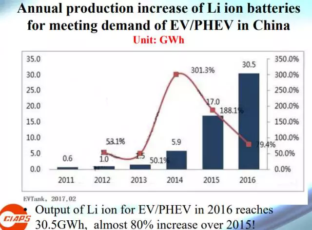 1,2016年中國新能源汽車和鋰離子電池的增長情況