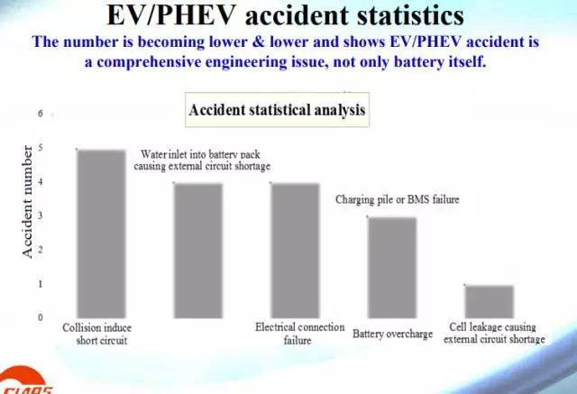 事故數(shù)量越來越少,電動汽車事故不單單是電池本身的問題(碰撞短路/進水短路/電氣連接失效/充電樁或BMS失效/電芯泄漏短路)