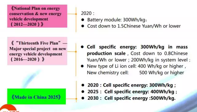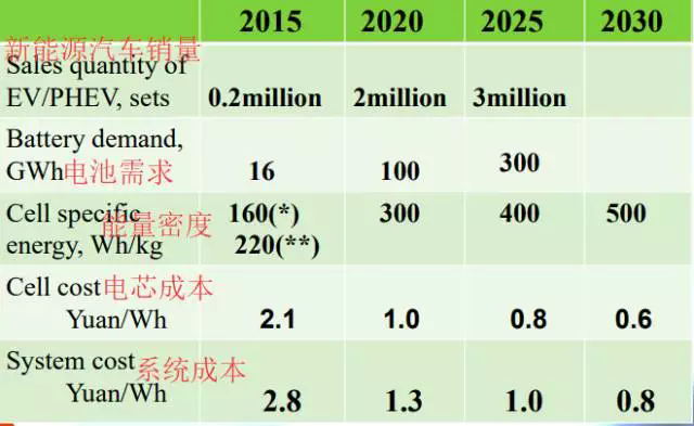 到2020年電池模組達到300Wh/kg成本下降到¥1.5/Wh